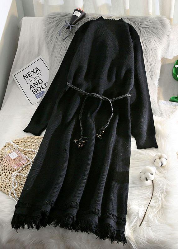 春用 タッセルデザイン セーターウェザー ファッション ベージュ ヒップスター ニットワンピース