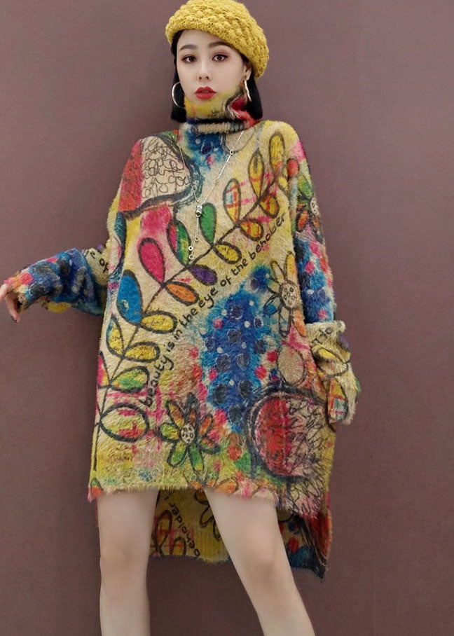 【春】リーフプリント ルーズフィット サイドスリット ニットワンピース(レディース)