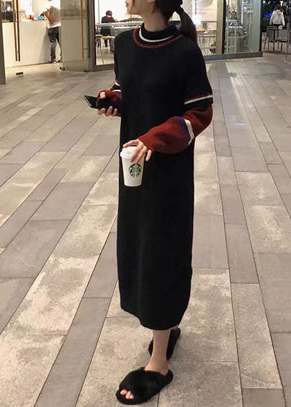 シンプル Oネック ラフエッジ セーターウェザー アップサイクル風 ブラック ヒップスター ニットウェア